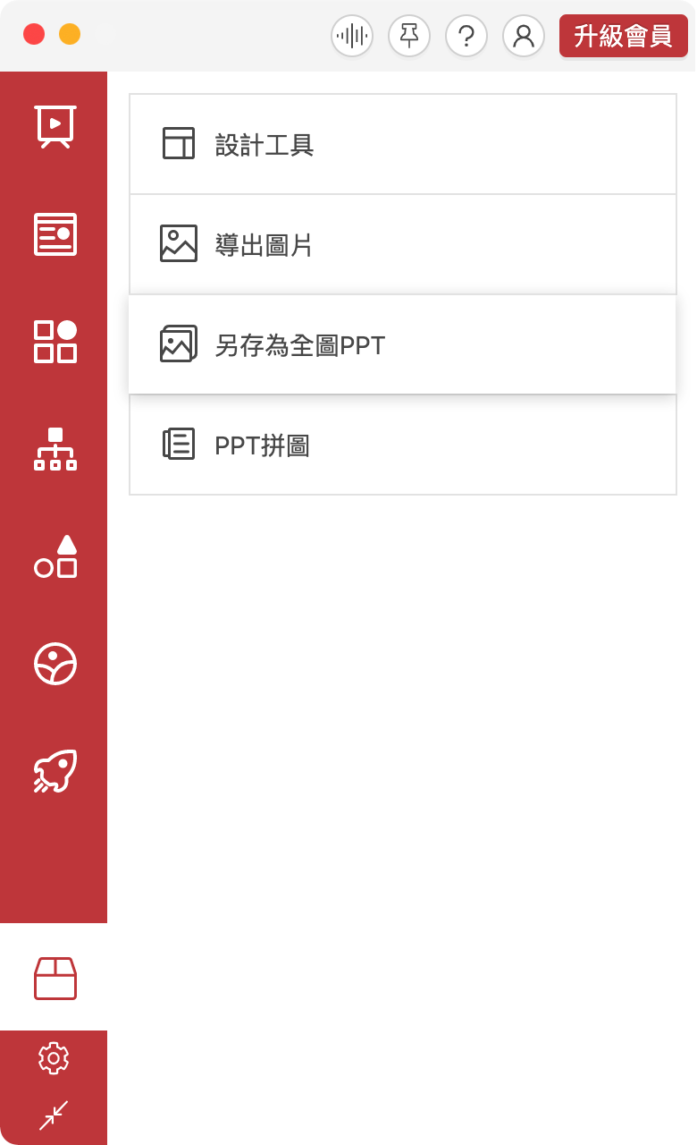 macOS版iSlide的工具箱功能相对较少,主要就是将PPT导出为图片,但作为一款PPT神器,在Windows上的表现,才是这款软件真正的实力。