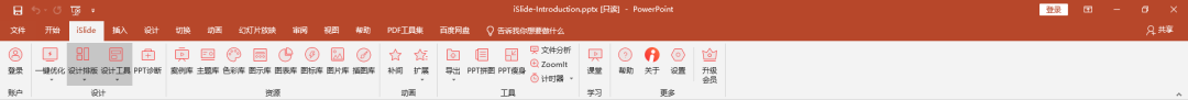 Windows上的iSlide直接内嵌在PowerPoint的功能栏中,可以直接对PPT文档进行全面、批量的编辑。