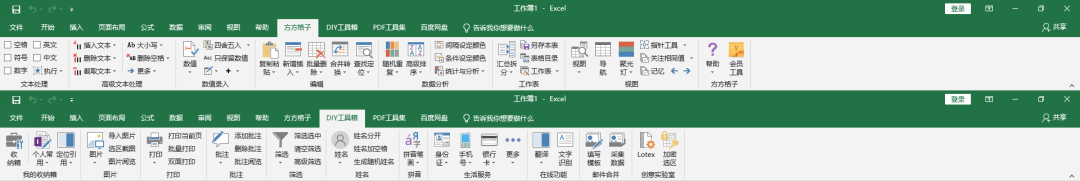 和其他Office插件一样,方方格子在安装后同样会出现在功能栏中,而它的强大,小黑觉得只要看标签中的功能就能感受一二了。