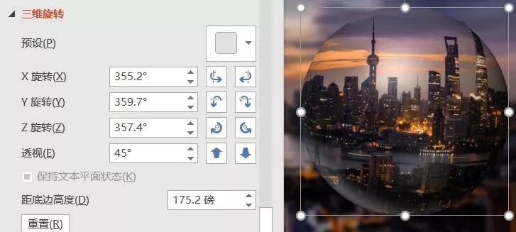 出现下图左边的效果,如果感觉球体内的图片效果需要调整,点开三维旋转进行调整。