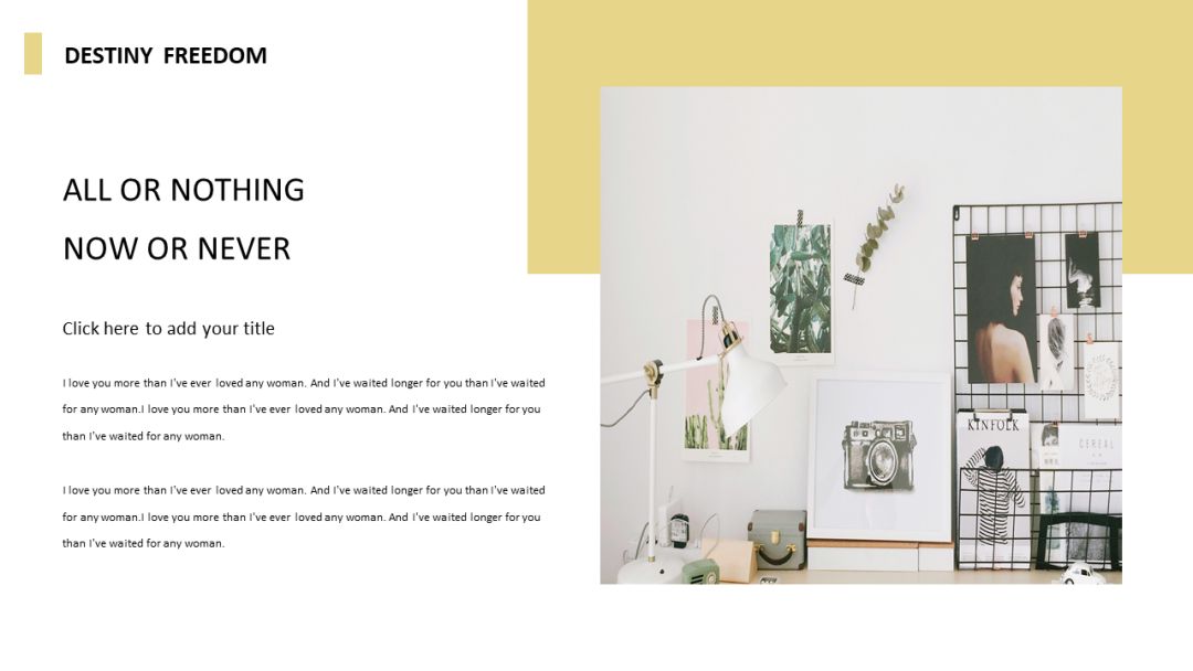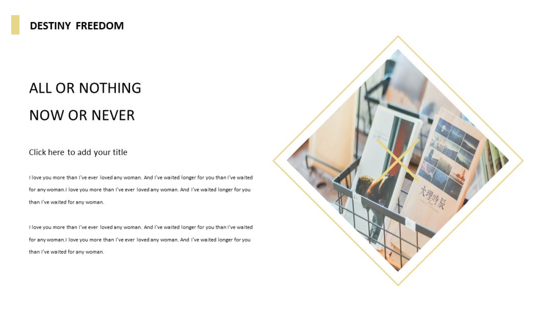 在之前的一期微信文章中,我曾经跟大家讲过一个事:ipad,iphone和苹果电脑都是很有设计感的美物,我们在PPT的图片底下插入这些美物的图片,瞬间就会让图片去除单调感,同时也会让整个版面显得既现代又高级。所以,当我们在做「一侧图一侧文」的PPT时,美物也是一个你不能忘记的素材。