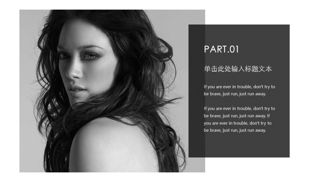 不管是色块交错,还是色块拼贴,你记住一个道理:可以加实心色块的地方,其实也可以加半透明的色块。当你插入一个半透明色块,让它跟图片交错搭在一起时,图片会若隐若现,版面就有层次感。