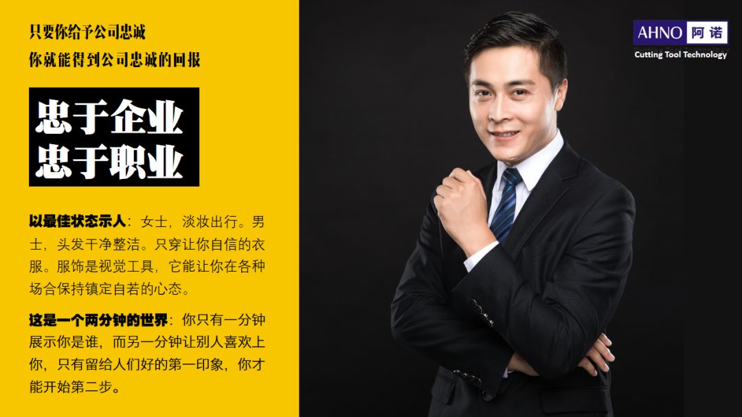 第一步, 去网上找一个高清的商务人士的图片放左边,同时把logo放在右上角。