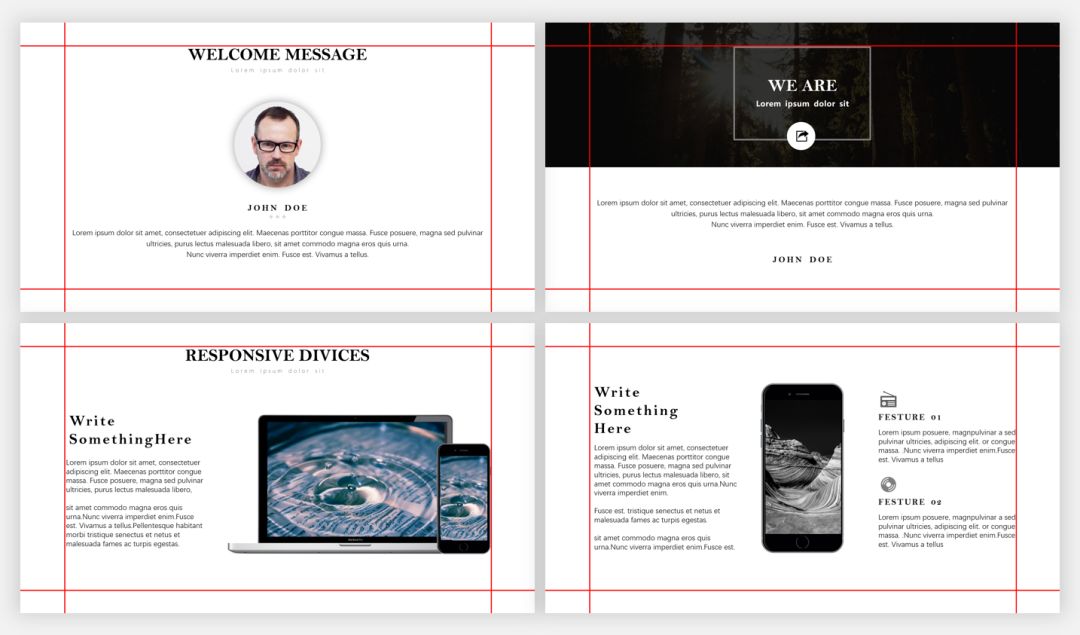 首先,在PPT中拉出四条参考线,就能规定好页边距了。