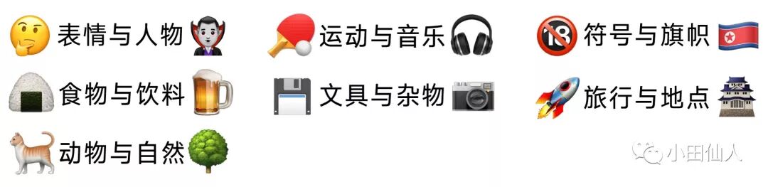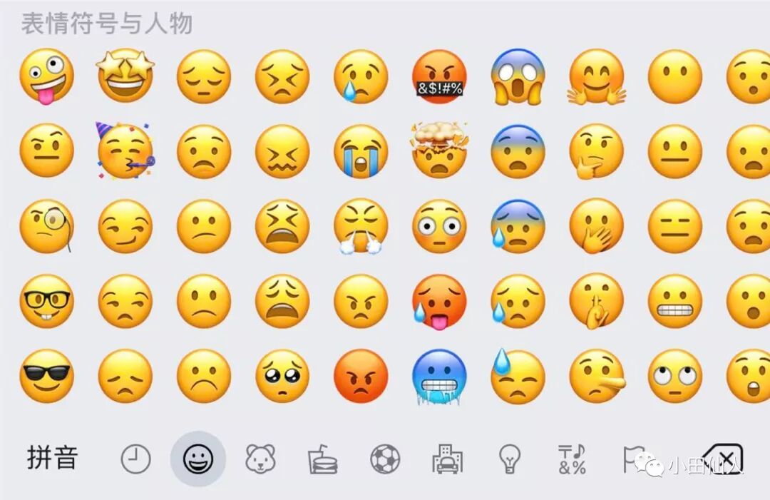 上图的界面大家应该都是熟悉的,微信中的emoji界面,这里大概是大家最多使用emoji的场景了。而现在我们刚好也可以打开微信,熟悉一下emoji的分类方式。