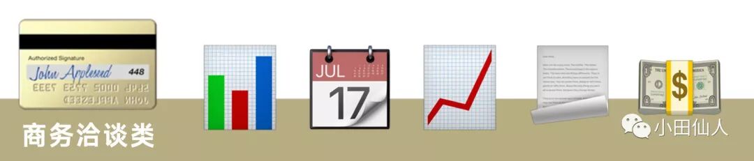 其实商务类的ppt可能并不是非常适合使用过分卡通化的emoji图形,毕竟作为代表企业形象的时候,还是踏踏实实的使用企业的vis系统来规范ppt的形象会显得比较正式。当然,如果看到这里依旧很愿意尝试以下,我认为依旧有一些icon是适合使用的,比如基本的数字icon做为分段符来使用,以及我们可以找到非常多如上图具有明确商业行为指向的icon可以调剂商务ppt过于冷静客观的风格,用这样的方法使你的观众或者客户,始终能把注意力集中在ppt之上(当然,商务ppt不能过分卡通,喧宾夺主)