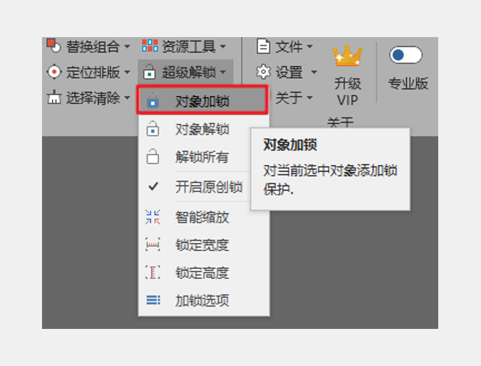 之后,选中之前做好的文本框,开启原创锁,并点击【对象加锁】