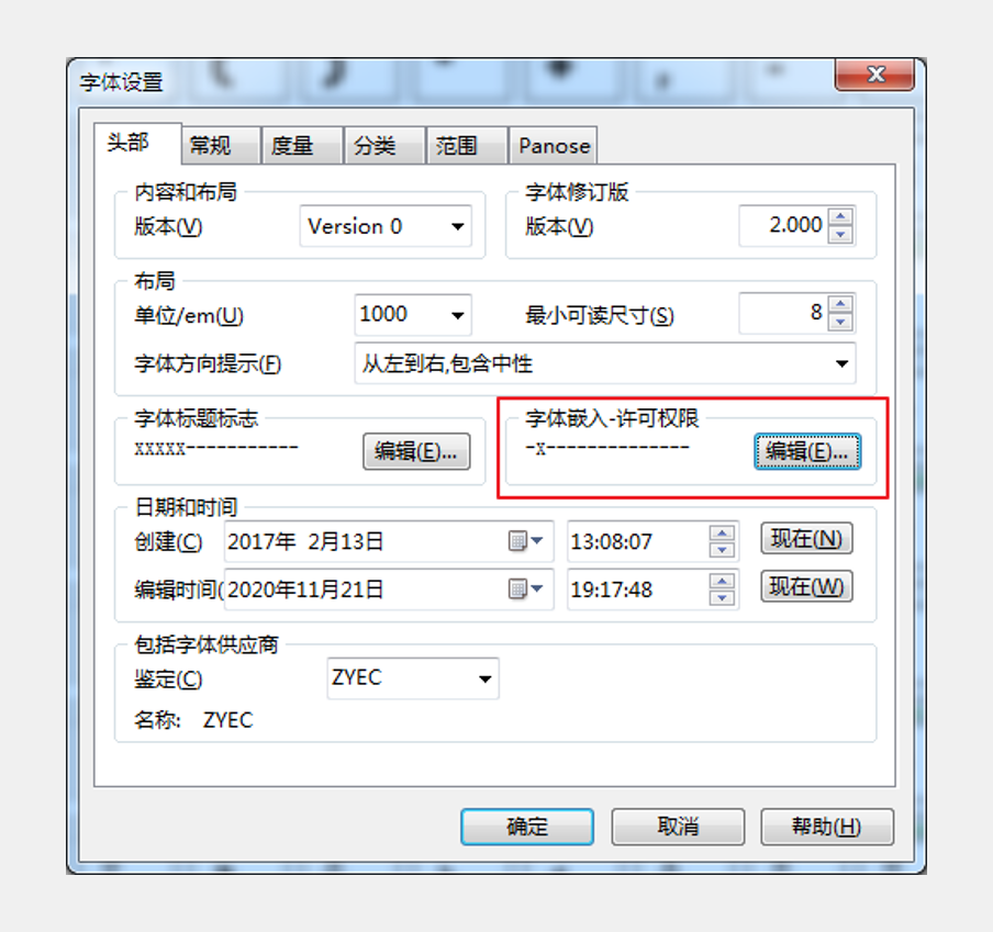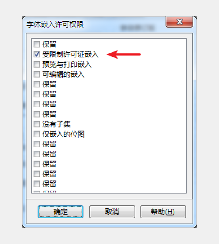 选择受限制许可证嵌入,在前面打勾后确定保存字体。