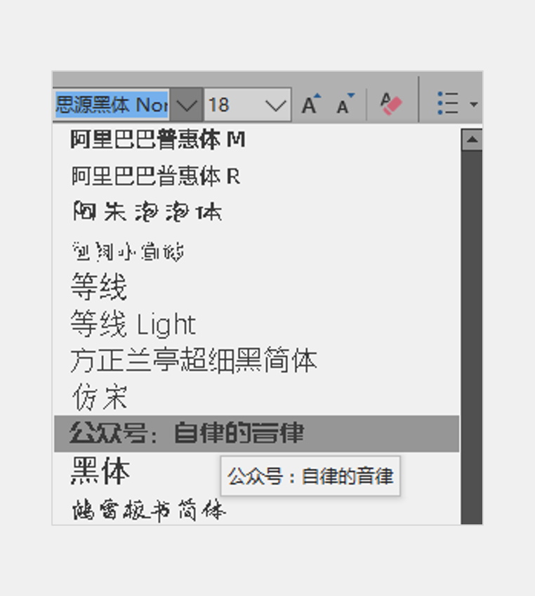 只能显示文本框和形状中用到的字体,项目符号的字体显示不了: