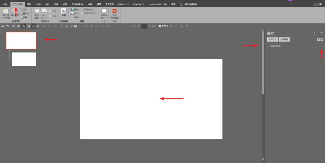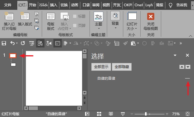 再把它放到母版视图中,在选择窗口中隐藏起来: