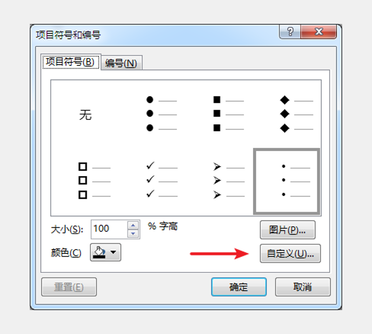 因为重新自定义项目符号的时候,弹出的字体设置中,只会显示普通文本,而不会显示修改后的字体。