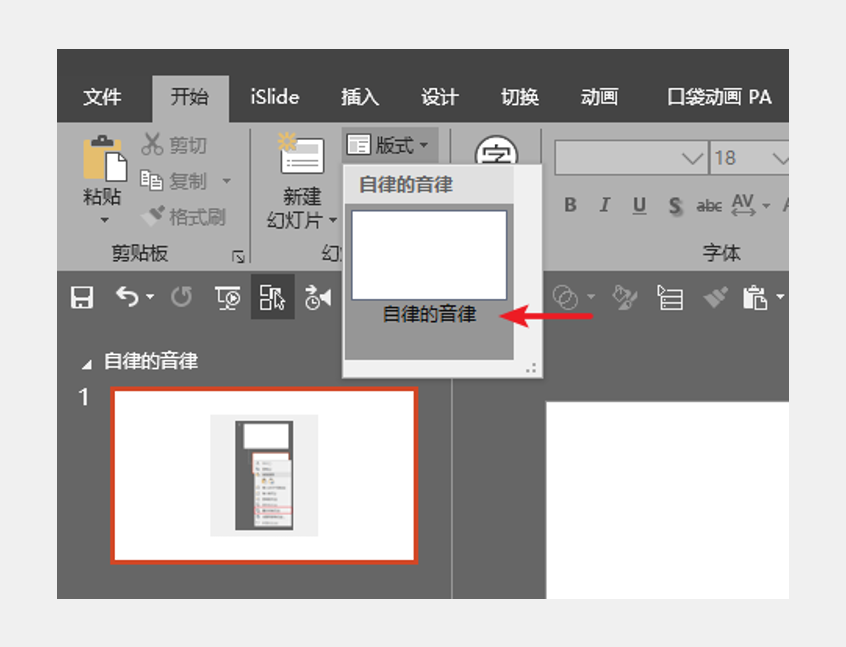 版式重命名后,点击开始菜单中的版式,就可以看到对应的信息。