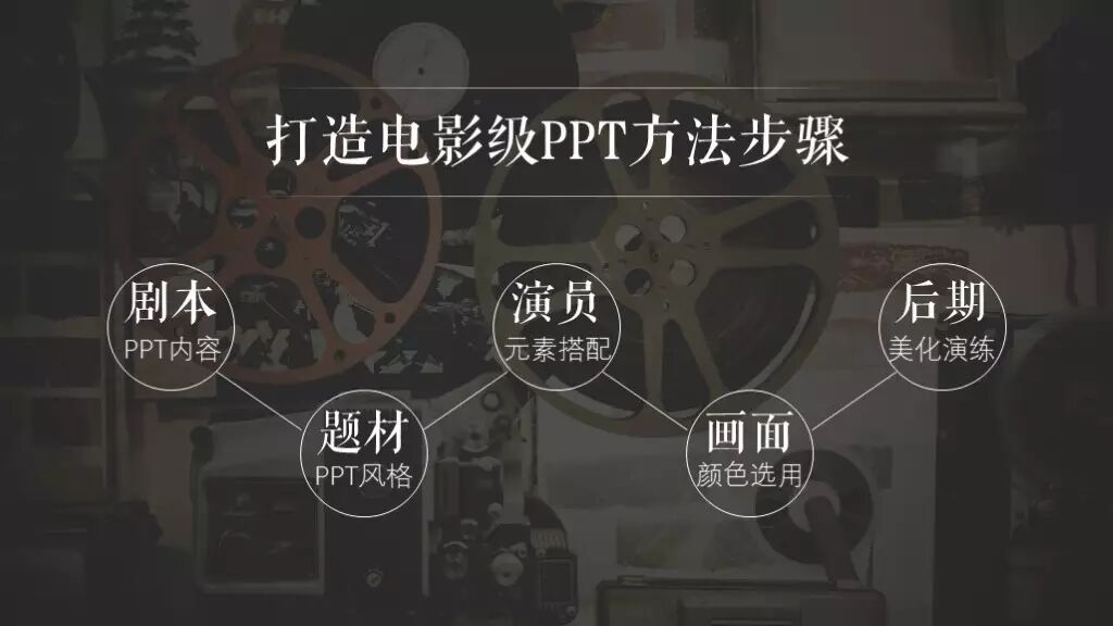 了解完电影的特点,下面我们就参照电影的拍摄过程来讲解一下——打造电影级PPT的过程......