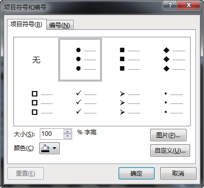 通过“项目符号和编号”对话框,可以自由设置项目符号的样式(样式可以是系统字库的符号,也可以是硬盘或网络中的某张图片),可以自由设定编号的起始编号、编号颜色。
