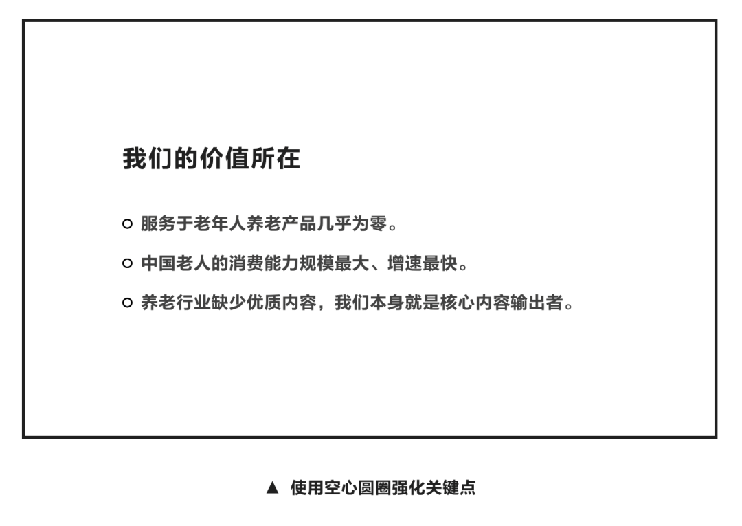 当你使用「空心圆圈」符号来强化关键论点时,这些观点同属于并列的关系,你依次去讲解即可。
