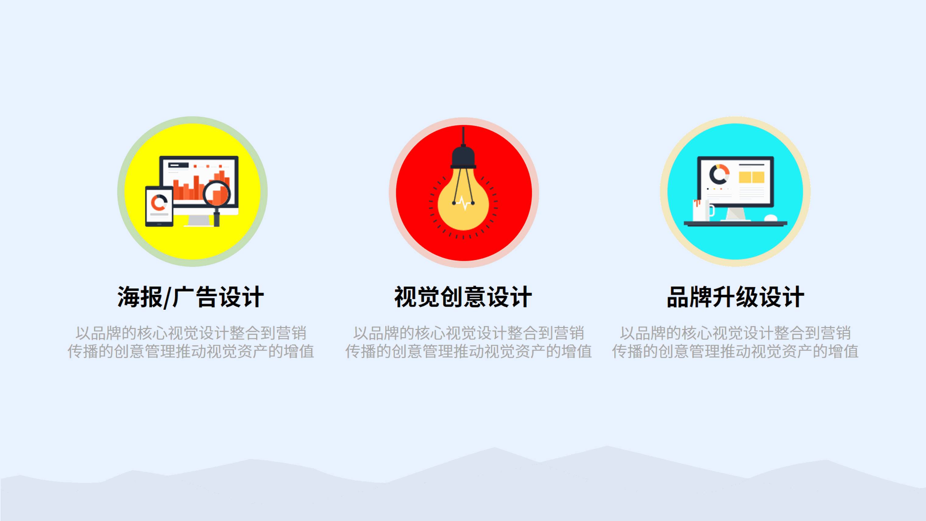 图标的使用在扁平化PPT中有很高的优先级,不信,你把图标去掉试试。