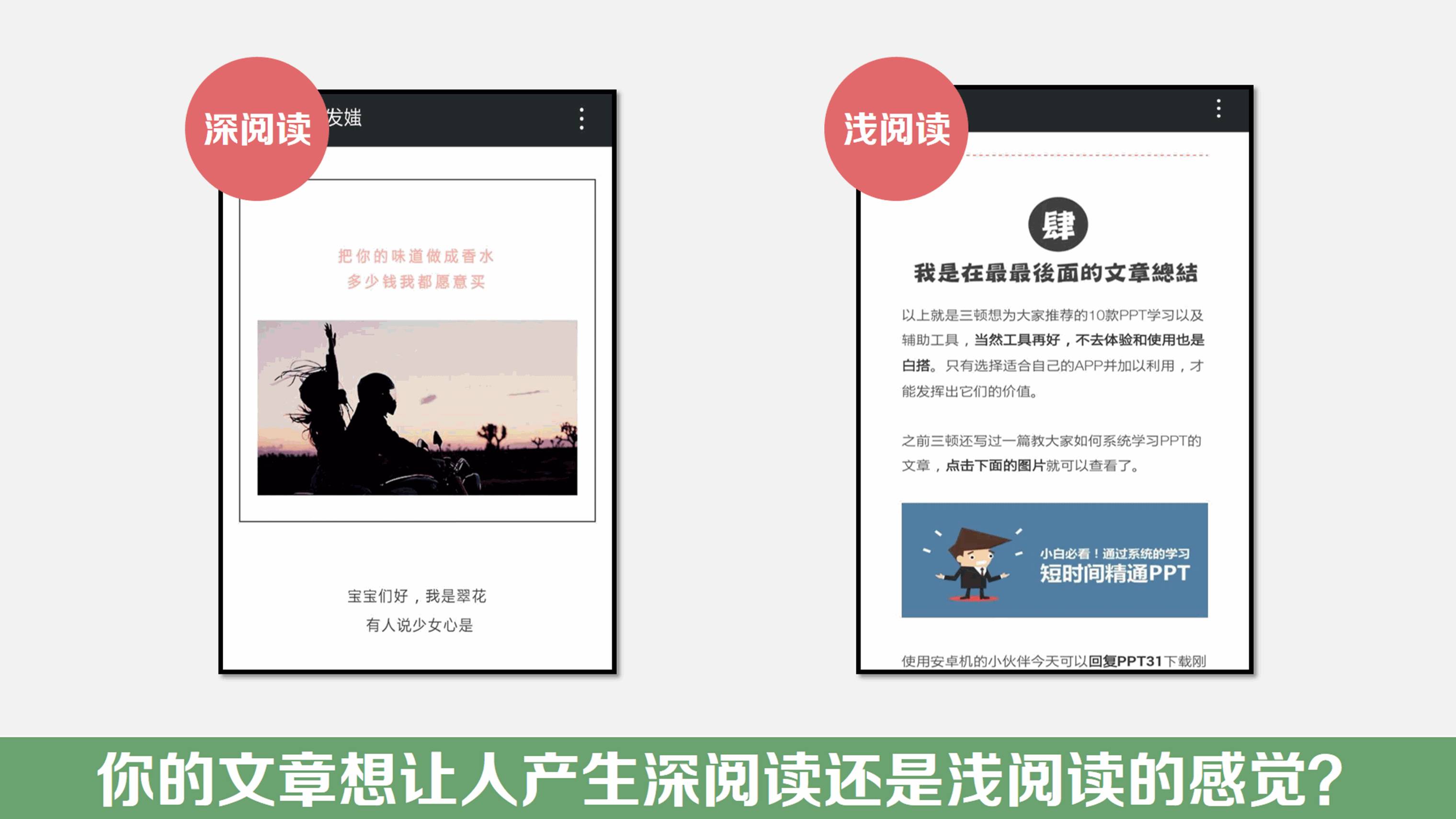 在扁平化PPT中三顿不建议大家使用各式各样的图片素材,原因很简单,很多图片在拍摄构图时就带有层次感,会显得与整体不搭。