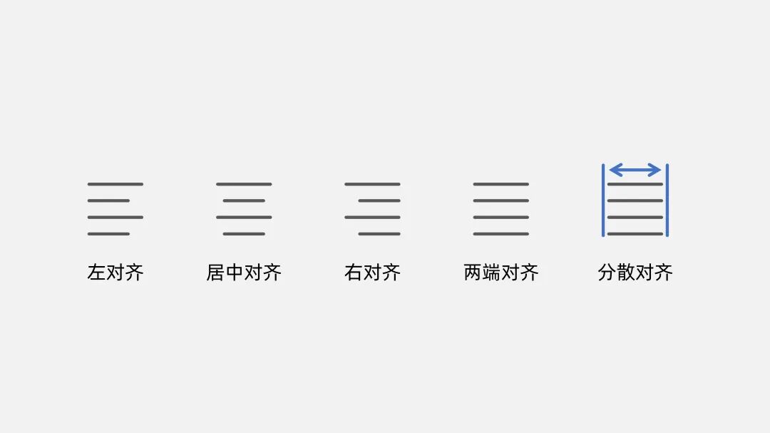 文字的对齐主要包括左对齐、居中对齐、右对齐、两端对齐、分散对齐五种。