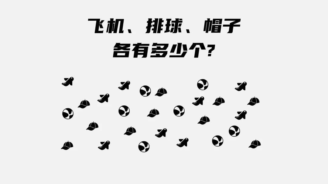 先看两张图,你能迅速回答飞机、排球、帽子各有多少个么?