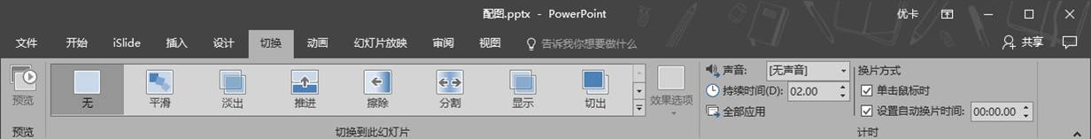 在【切换】菜单最右侧有个【设置自动换片时间】,勾选后,并设置时间为:00:00.00,即可实现 PPT 页面的无缝切换,而且是自动切换的哦。
