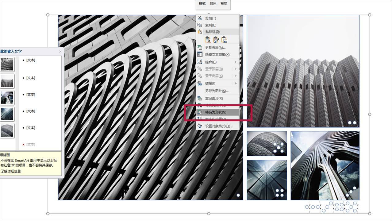 接下来只要将 SmartArt 转为形状,然后删除不必要的小圆,再添加文字美化。一页美观的 PPT 立马做好了。