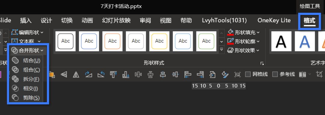 接着框选中形状跟文字,点击【形状格式】-【合并形状】-【相交】,你就能把文字变成形状了!