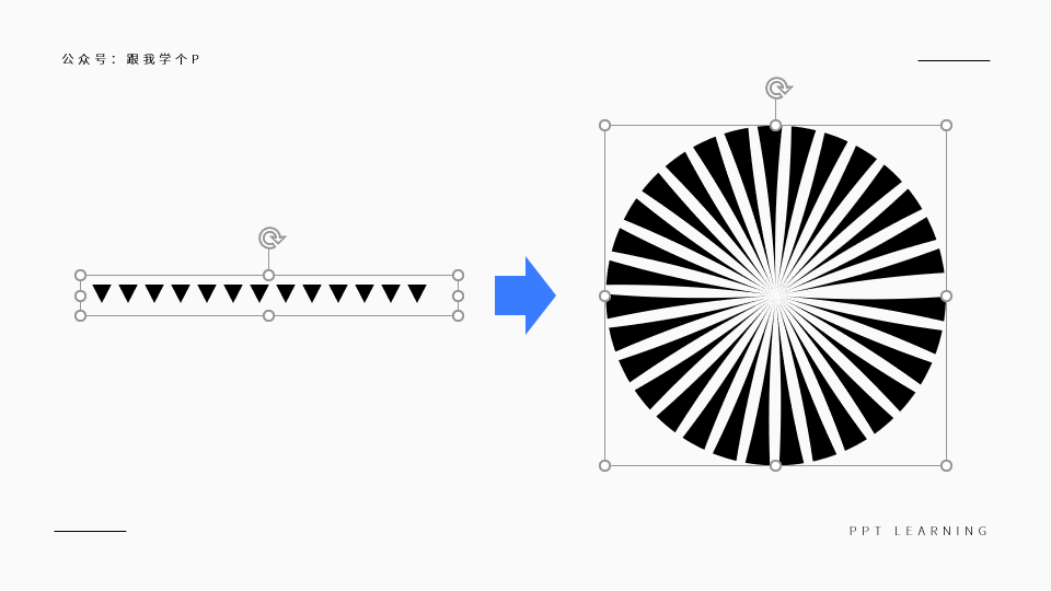 首先,随便在文本框里输入一串“-”或“▼”的标点符号,然后将其【转换】为【不规则圆】,你就能看到普通的文本框变成了下面这个鸟样…