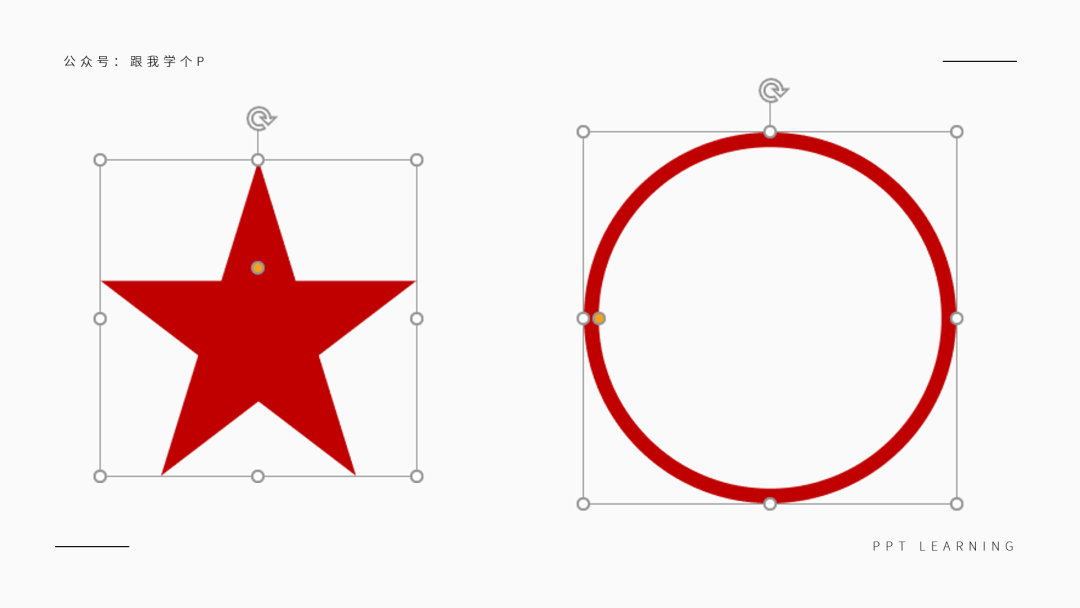 1. 按住【Shift】键,分别插入一个正圆环的形状,以及一个五角星的形状,拉动这俩形状上的小黄点你可以调整形状的样式: