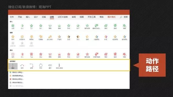 这里我们借助【动画-动作路径】这一动画效果~设置好不同图层移动的长度及时间顺序,就可以做到视差动画的效果了!