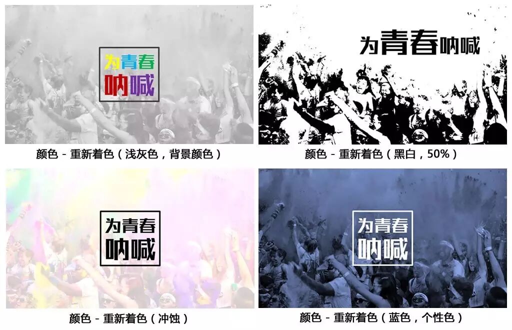 具体做法是在图片上添加一个颜色为半透明的形状对图案进行遮罩。可以根据图案的色彩和模板的色彩选择黑色、白色,甚至是其他色彩的遮罩。