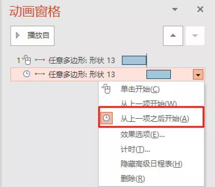 可以看到,我把第二个路径动画的出发点放到了第一个路径动画的终点,而终点的位置可以随意摆放(保证同一条直线即可),然后把第二个动画的计时开始改为从上一项之后开始即可。
