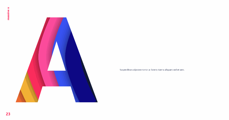 今天分享一套国外动感时尚的遮罩动画PPT模板,这套模板有3种样式,第一种是扭动的色带作为动态遮罩背景;第二种是数字作为遮罩,从0到9的页面都有,相对比较完整;第三种是字幕作为遮罩,从A到Z的页面都有,完全可以把其中几页拿出来组合成为一套模板,前后一致性很好!