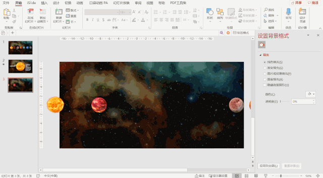 编按: 前段时间我们推出了《我最喜欢的PPT动画》栏目,获得了粉丝们积极响应。最终我们的动画1,星球动画以遥遥领先的票数登顶第一位。如果我们要做一个科幻或者自然科学演讲,这个动画是个不错的开头,快速把观众带入茫茫宇宙。下面就让我们一起学习一下这个动画是如何实现的!
