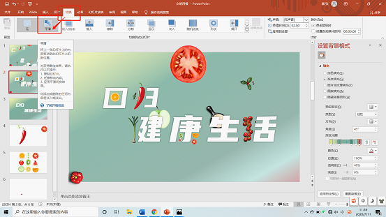 编按: 让PPT标题动起来!拆分后的文字笔画依次飞入画面再组成完整的标题是个不错的主意。央视播出的公筷广告就用了这样的创意。今天随心给大家带来的是一款代替部分笔画的水果、蔬菜和其他笔画一起飞入组成标题的动画。动画主要使用了PPT2019版本中的平滑功能。一起来看看吧!