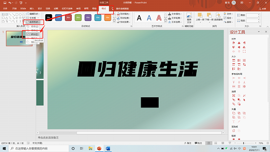 把多余的部分删去,更改文字为白色,再点击【设置形状格式】给文字加上一个【外部阴影】,这样看起来就非常立体了。
