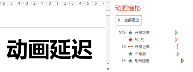 在做动画叠加时,需要注意一个操作细节—— 只为一个对象添加一个动画效果,可以在下图左侧区域中直接点选; 但要为这个对象添加更多动画效果,则必须通过右侧的“添加动画”按钮完成。 ———————— 你留意的话会发现,在快闪动画的显示区域外,有一些文本框: 这是为了控制播放速度,延迟翻页时间。这个技巧在动画自动播放的场合很常用到。