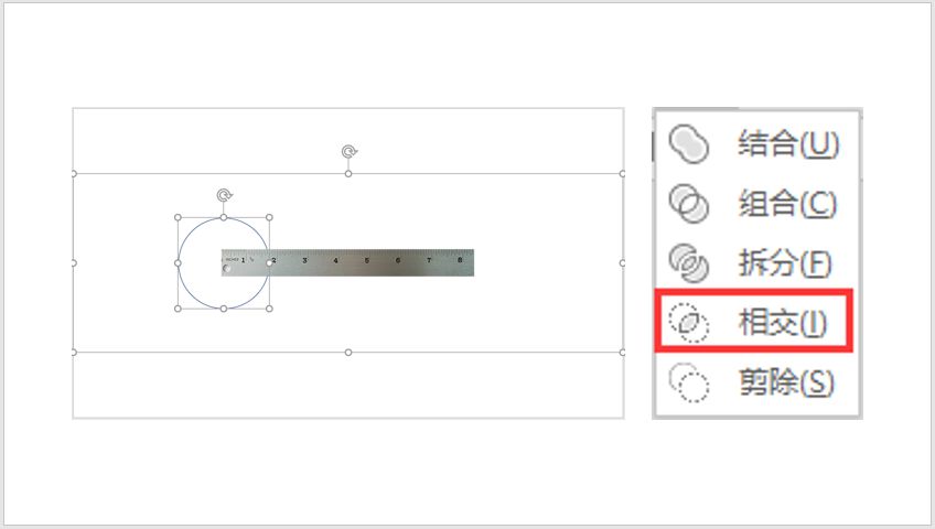 先选中“增强型图元文件后的标尺” >按住【Shift】键,同时选中圆形透明色块>把它们做【布尔运算】中的【相交】运算。