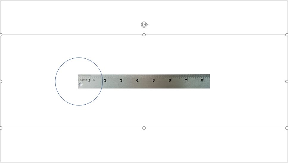 然后在插入一个矩形色块,并把它居于页面中央(注意:这个矩形色块一定得把圆形透明色块与标尺完全覆盖。)