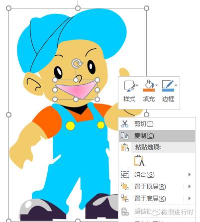四、放回到PPT,将嘴巴组合在图片上,和人物图片一起复制。