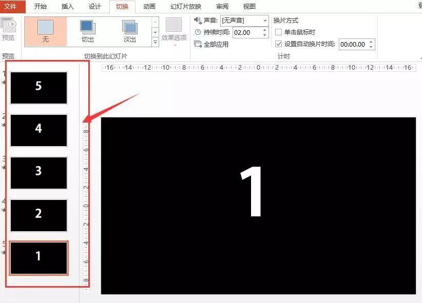 5、复制当前幻灯片,粘贴4张(共5张数字),并改为对应数字4,3,2,1