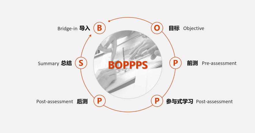 放大缩小:放大是加强,缩小是弱化,这个比较好理解。如下面的案例,在介绍了一节课采用BOPPPS的模型展开后,接下来你想重点展开其中一个P参与式学习,那就可以放大这一项,人的视觉移动方向总是按照先大后小、颜色从深到浅的顺序移动的,所以当全部整体中的某一项产生变大效果时,观众的视觉会跟随移动,从而达到聚焦目的。