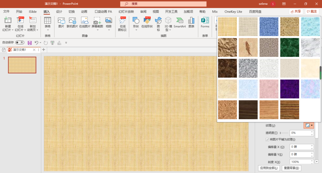 PPT当中自带有一些纹理素材,不过这些素材的美感确实不咋地