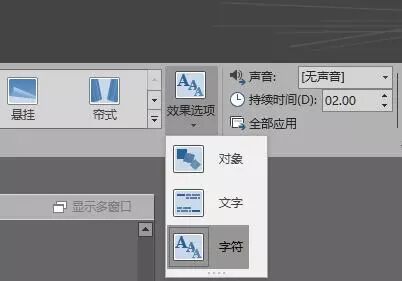 在“效果选项”要选择“字符”方可实现