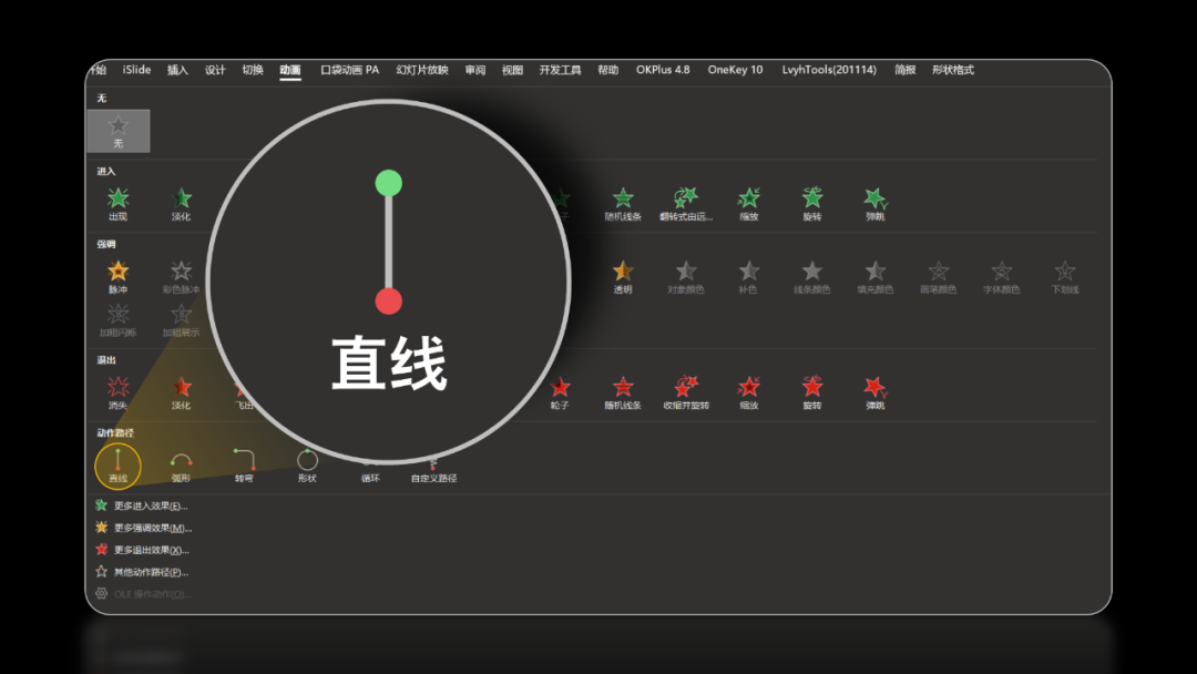 当然,即使你不是尊贵的Office365用户(坊间戏称),也可以通过添加直线动画的方式,实现这个效果。