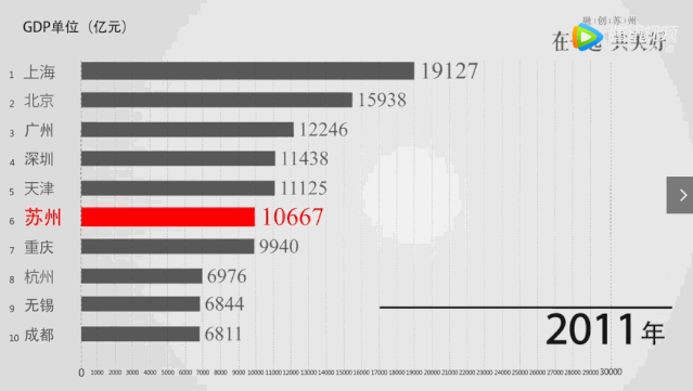 这个视频出来后,吴晓波频道出了一个中国城市的GDP排名,同样朋友圈又刷了一波▼