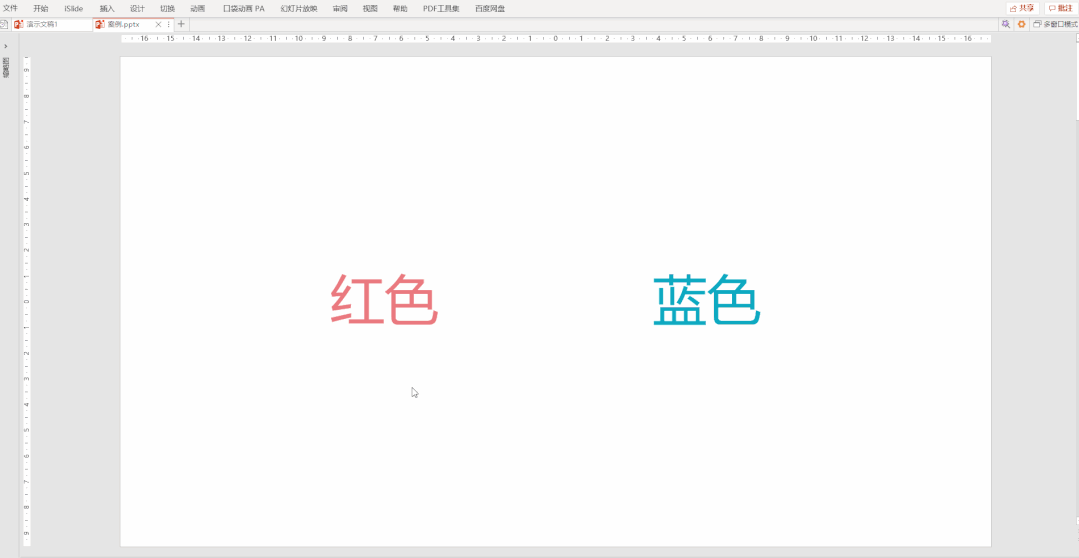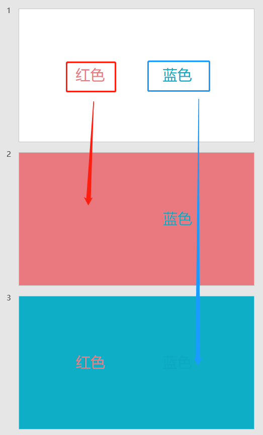 也就是说,我们通过「动作」功能,让红色字体关联到红色页面,而让蓝色字体关联到蓝色页面。