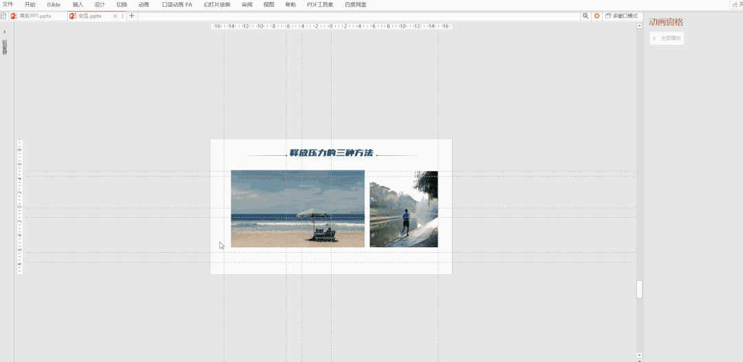 我们拆解完案例一后,会发现这个案例最主要由两个部分构成:4 张PPT内容页+动作功能。