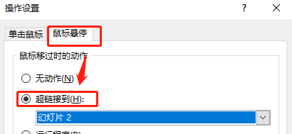 当然,如果我们希望自己不需要点击,而是直接让鼠标停靠在目标源,就可以实现跳转的效果,那就可以选择鼠标悬停。