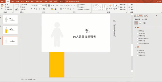 今天,我跟大家分享如何用PPT图案设计一个火柴人图表动画,加上数字动画,如下图所示。