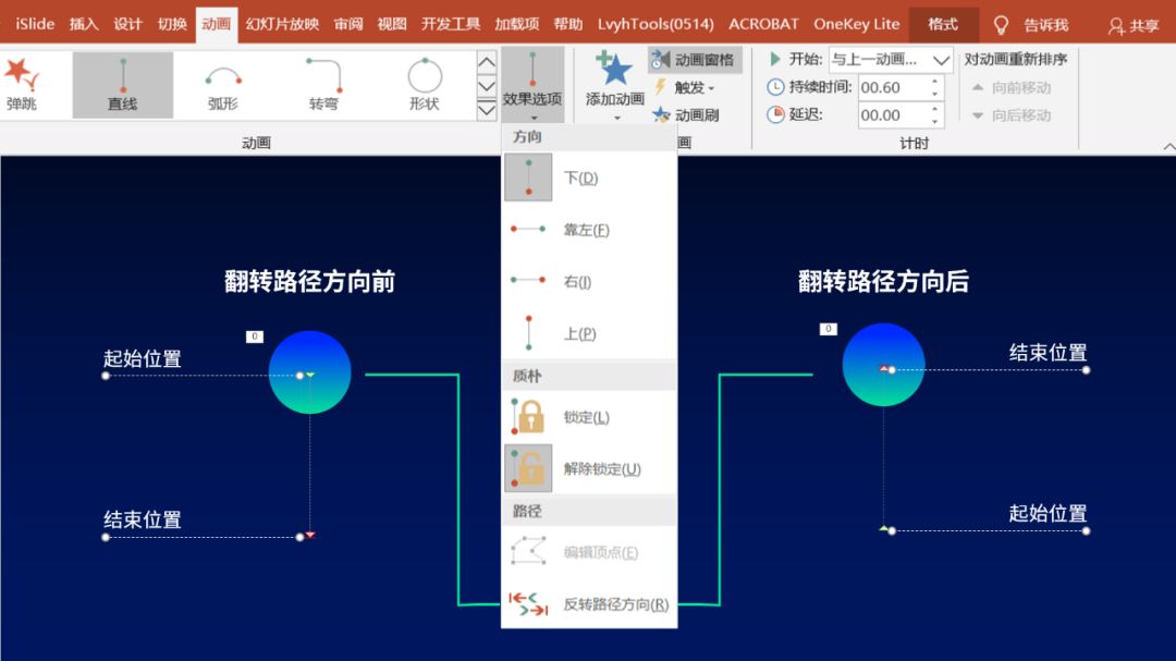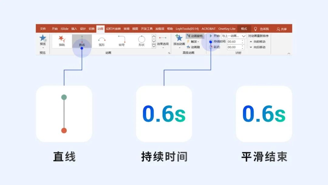 圆形扩散出现动画也简单,给所有圆形加一个 [ 路径 ] 动画,持续时间设为 0.6 秒,并设置平滑结束,同样为 0.6 秒。